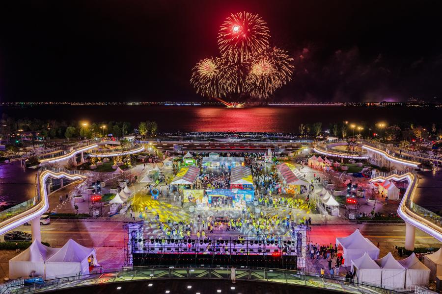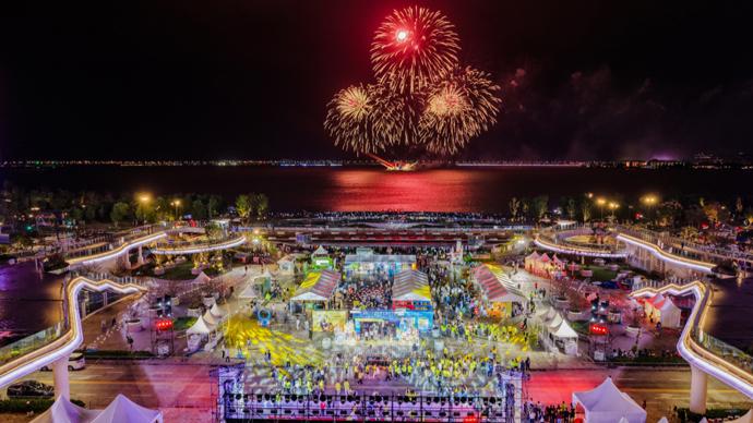 滴水湖畔的煙花光影之夜,潮流電音與搏擊操融合的全民團操燃動,體育賽事與互動集市串聯。10月18日晚,第十七屆上海國際大衆體育節在臨港滴水湖廣場正式開幕。