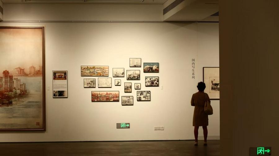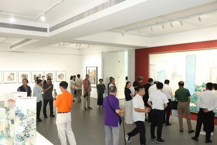 作爲劉海粟美術館(分館)煥新開放的首展首秀,《行觀——汪家芳藝術作品大展》集結汪家芳120餘幅精品力作,每一層皆呈現不同主題——從“日常塗鴉”到“山水意境”,由“地域風貌”延伸至“城市記憶”,觀展過程意趣盎然。既有《浦東》《初心》等城市題材代表作,也有《印象普陀》《M50創意園區》等爲普陀量身打造的新作。