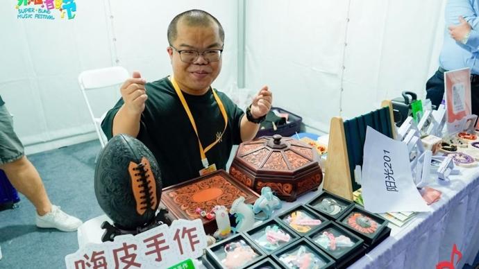 “一開始是被音樂節的演出吸引來的,沒想到被公益攤位圈了粉。”遊客趙先生說,看到殘疾人朋友自信地介紹自己的作品,特別受觸動,這纔是真正的“走出去”,不僅走出小圈子,還能走向更大的舞臺。