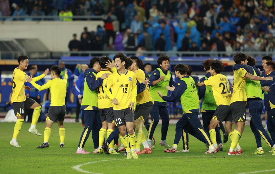 江蘇省城市足球聯賽(以下簡稱“蘇超”)半決賽10月19日晚結束。南通隊與泰州隊戰勝各自對手會師決賽,前者是常規賽以10勝2平保持不敗的“領頭羊”,後者則連續淘汰排名第三的徐州隊和排名第二的南京隊,成爲今年蘇超的大黑馬。