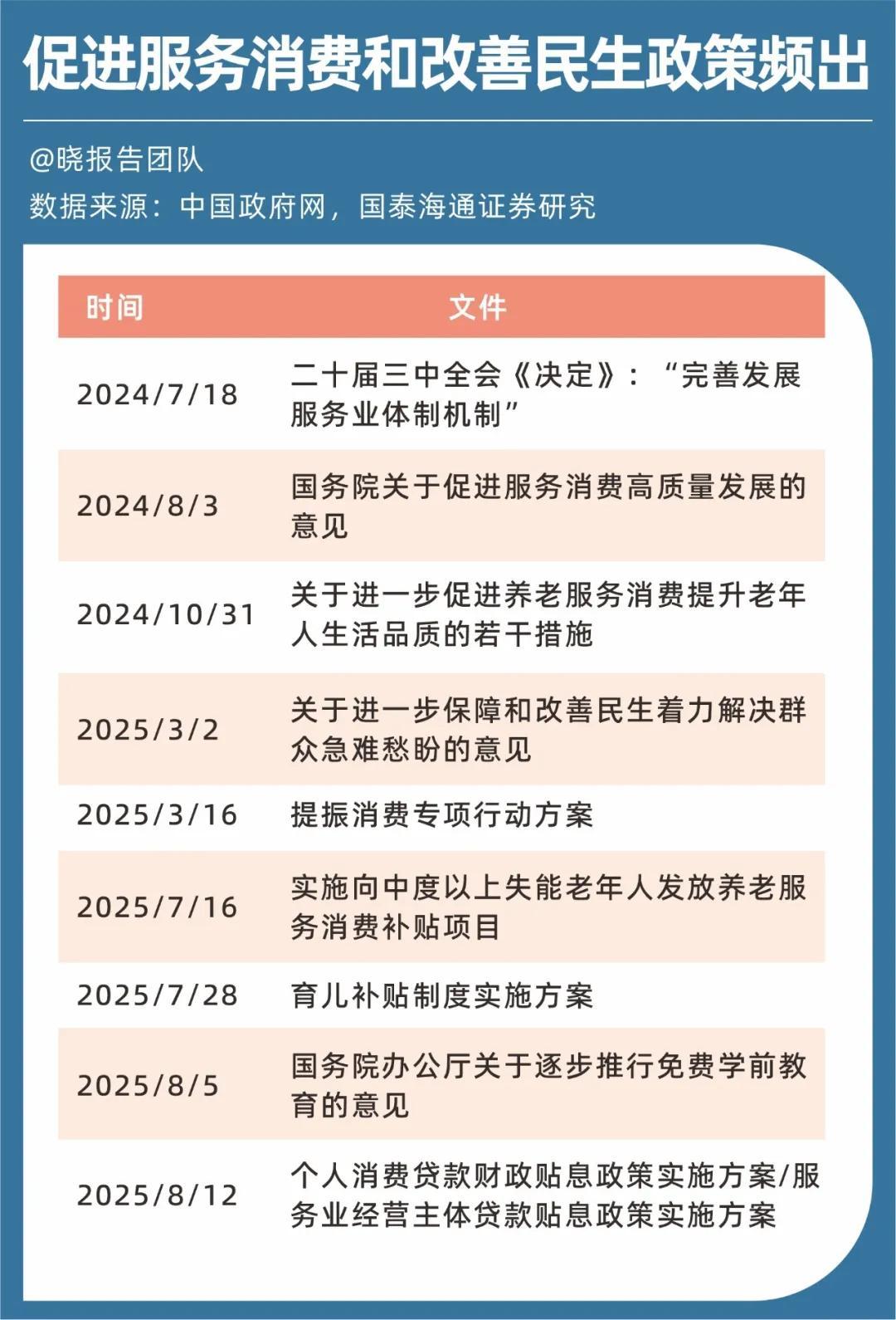 此外,就是大力發展服務型消費。最近兩年,國家層面,密集出臺了多項服務消費刺激政策。如2024年8月3日,國務院出臺《促進服務消費高質量發展的意見》,2025年3月16日推出《提振消費專項行動方案》、7月28日的《育兒補貼制度實施方案》等。