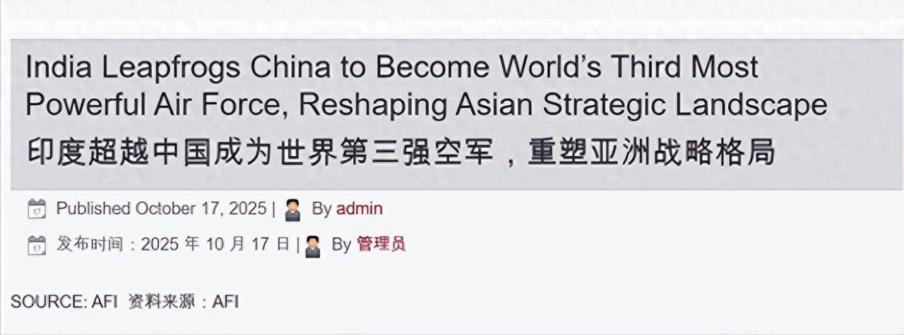 美國智庫所謂空軍實力排行榜中,“印度空軍排名超中國位列第三”,印度媒體嗨了,網友:那巴基斯坦得排第二——觀察者網2025-10-20