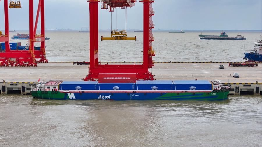 10月20日,全球首艘甲醇電動集散兩用船“遠醇001”號首航儀式在上海港羅東集裝箱碼頭順利舉行。儀式現場,上港集團與吉利控股集團簽署綠色航運戰略合作協議,雙方將攜手推動甲醇電動技術在綠色航運及綠色港口領域的推廣應用,爲內河航運綠色轉型注入新動能。