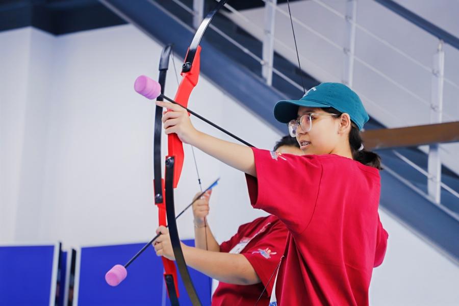 在復興中學比賽現場,毽球如燕穿梭,融合踢毽技巧與排球規則的對抗精彩紛呈;押加賽上,選手們化身“大力士”,上演力量與技巧的較量;射箭場內,凝神拉弓、直指靶心的身影盡顯傳統射藝魅力。