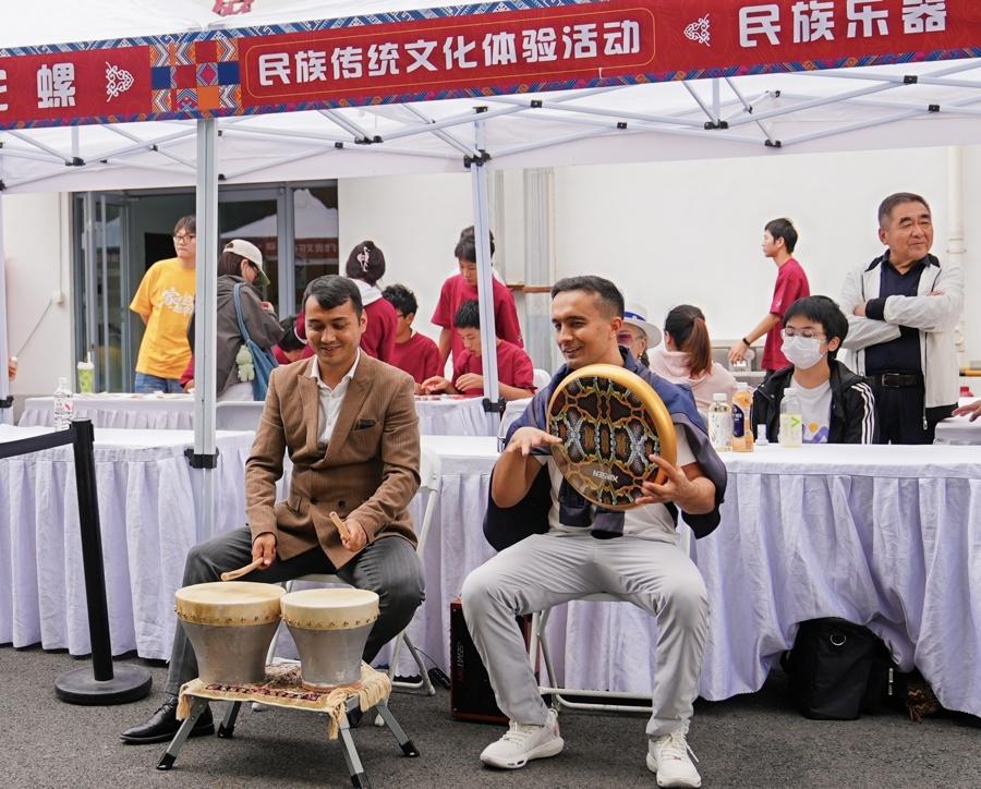 虹口體育館賽區則成了非遺文化體驗樂園。非遺展區內,傳承人現場展演民族樂器製作、刺繡等技藝;文化體驗區裏,電子騎馬、石鎖挑戰、壯族高杆拋繡球等10餘個項目吸引市民踊躍參與,“沙嘎”遊戲的童趣笑聲不斷。史料展則通過珍貴資料,訴說着滬上各族羣衆交往交流交融的動人故事。
