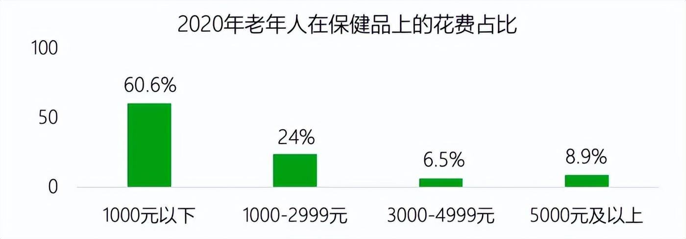 超過80%的老年人沒有服用保健品。在購買保健品的老年人中,有超過80%年消費金額在3000元以下;