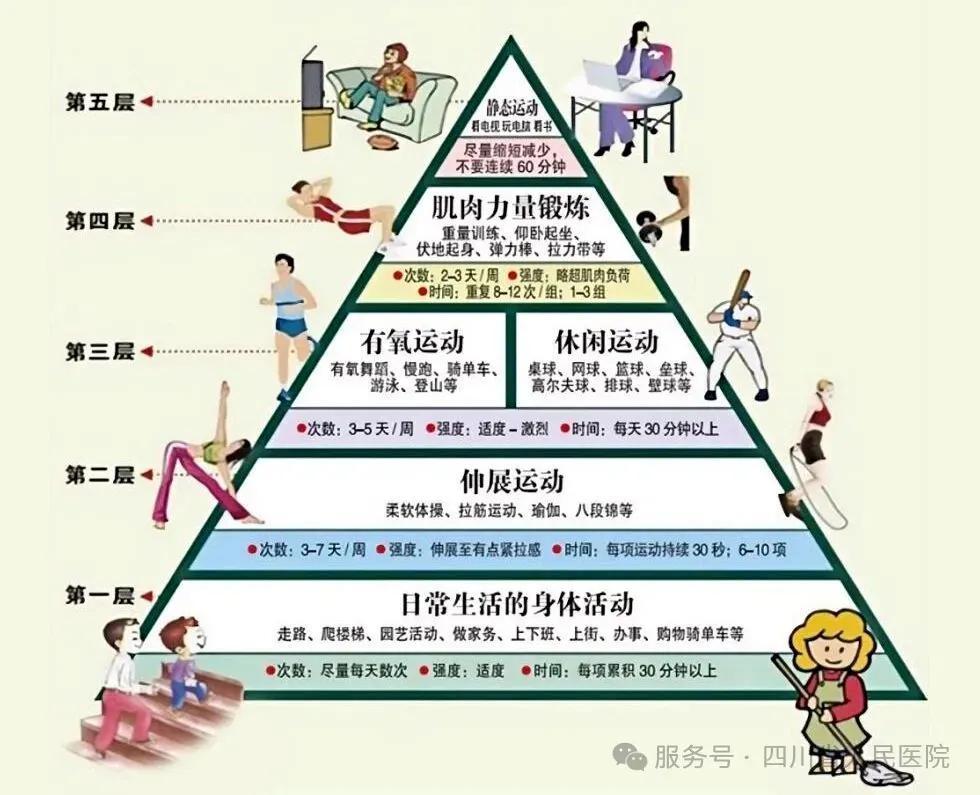 運動有一個“運動金字塔”,幫你合理搭配每週運動,讓健康效果事半功倍。