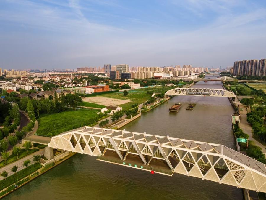 在滸墅關,“紅房子”並非個例,還有滸關南北橋。“我們致力於將滸關南北橋打造成蘇州首個運河上的文化藝術空間。”兩座大橋已引入網紅餐飲、咖啡店等,不定期開展書畫、攝影、文創作品展,舉辦漫遊打卡、非遺好物、親子手作等文化體驗。如今,南北橋成爲滸墅關特色文旅新地標和網紅打卡地。