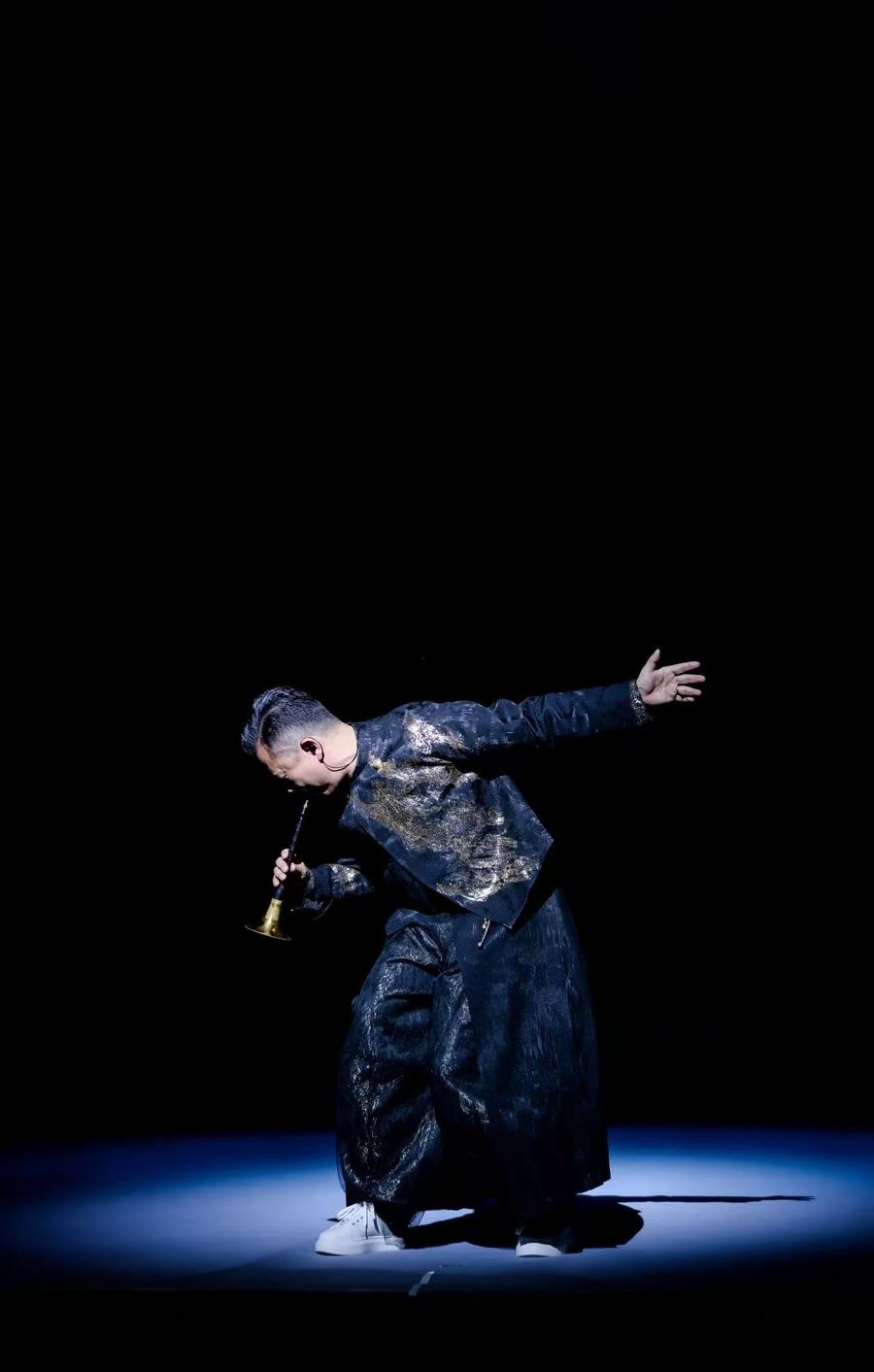 從遠古走來,喚起《穿越》《蜂飛》《絲路》的熱烈,舞臺氣氛由追憶沉靜式轉入靈動的節奏抑揚,在連接西域這個重要地域的音樂語言中,人們清晰地聆聽到“絲路”之音的飄揚,遙想,那時有多少樂器由此進入中國、有多少靜態的壁畫樂手造型讓人浮想聯翩。樂手們在嗩吶吹奏的循環換氣、快速吐音、滑音、顫音的形形色色技法中,將東亞西亞、民間樂種的濃烈火紅,穿越在觀衆中間,現場互動將炫技性達到高點,如此火紅熱烈,你似乎聽到皖西、魯西南嗩吶故鄉民間吹奏的大喜大悲,這是傳統與當代的融合,演奏家情感的表達、樂音的華彩運動,是技術昇華的表現,是中國本土文化的一種渲染方式,是東方美學相似的聽覺審美趣味的融合,正應了馮夢龍所說的“民間性情之響”的文化魅力。合奏《絲路》壓陣出場,樂隊排列打破以往舞臺固有形式,作品創意並非簡單的傳統復刻,而是在西域古典素材與現代聽覺語言之間強化音場的張力。吹管、彈撥、拉弦、敲擊樂器多元層次的音響空間大放光彩,快速而富有動力感的節拍節奏循環傳遞着一種年輕的新生力量。