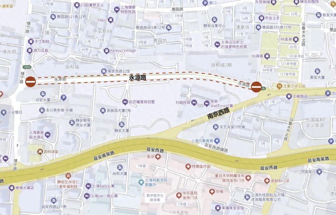 一、爲保障活動期間交通安全、有序、順暢,靜安區永源路(南京西路—鎮寧路)實施交通臨時管制,市民如需駕車通過交通臨時管制道路,請事先了解禁行時間,繞道行駛。