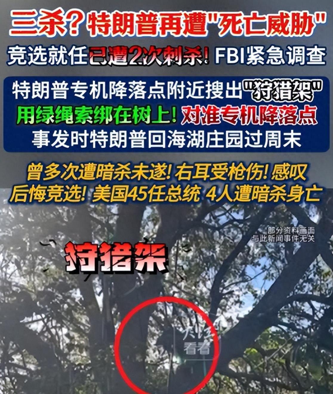 突發!特朗普緊急加強安保,距離專機不到200米發現疑似狙擊狩獵臺,FBI介入調查