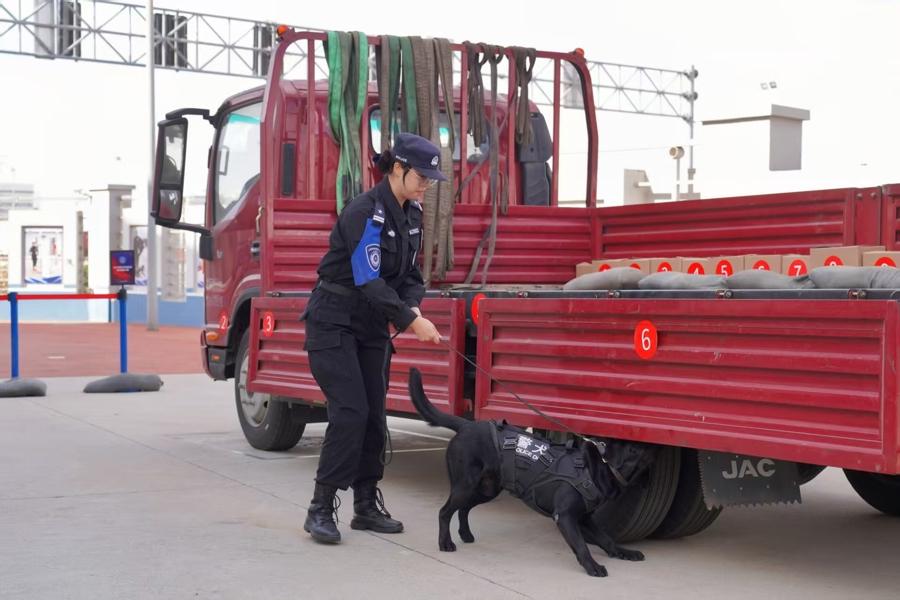 “我們設置的場景和環境相較於真實現場更加複雜和艱苦,旨在通過提高發現查緝的難度,提升警犬隊伍在極端條件下的實戰能力,爲口岸安全管控積累寶貴經驗。下一步,我們將結合本次比武,開展一些針對性訓練,在進博會期間強化實戰應用,爲築牢國門安全屏障貢獻力量。”洋山邊檢站副站長周佳傑表示。