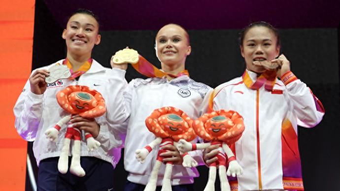 沒有拜爾斯,她能奪冠——梅爾尼科娃已經兩度回答了這個問題。東京奧運會後舉辦的北九州體操世錦賽,拜爾斯等名將缺席,梅爾尼科娃曾力壓兩名美國選手一舉奪冠,也就此打破美國體操隊對女子全能冠軍長達七屆世錦賽的壟斷。而自那以後,因爲俄烏衝突爆發,梅爾尼科娃再未登上國際大賽的舞臺。時隔四年重返世錦賽賽場,她再次抓住了機會——憑藉55.066的總分再度問鼎,並以0.1分的優勢力壓美國選手黃莉安。18歲的中國小將張清穎也有出色表現,驚喜收穫一枚銅牌,這是中國女子體操隊繼2019年唐茜靖之後再度站上世錦賽該項目領獎臺。