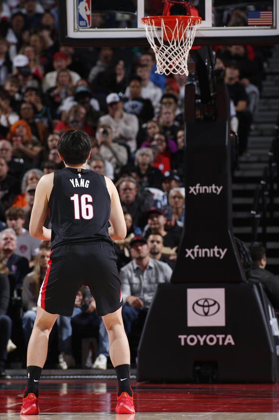 20歲的中國新秀在自己的NBA首秀中登場5分16秒,收穫2分1籃板1次犯規。楊瀚森在第一節中段被派遣上場,成爲第八位在NBA正賽亮相的中國球員。第二節,中國中鋒拋投造成對手犯規,兩次罰球全部命中,打開了在NBA的個人得分賬戶。下半場雙方比分持續膠着,楊瀚森未能再次獲得出場機會。
