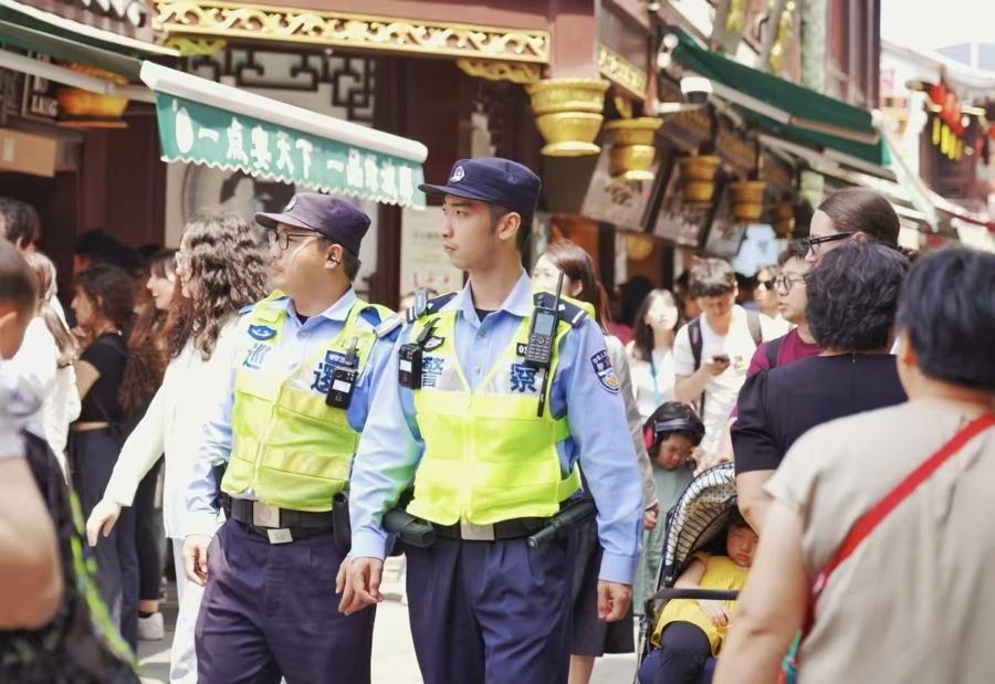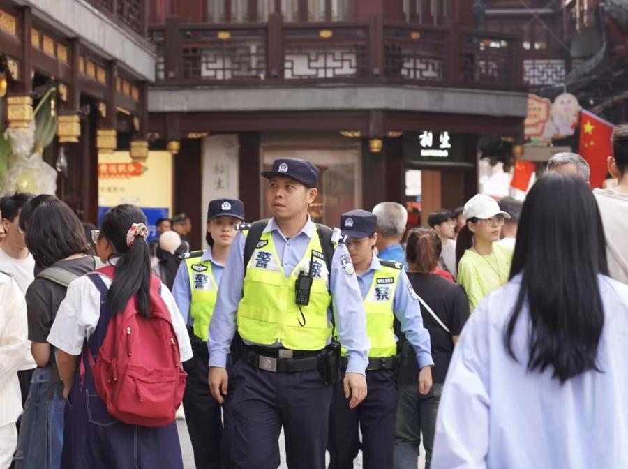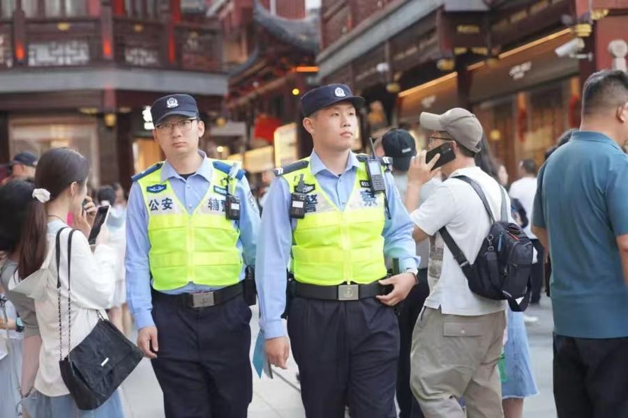 在豫園等重點商圈,警方進一步強化見警率與震懾力。警務平臺車24小時常駐重點路口,警力12小時不間斷駐巡,並增設多條步巡路線,全天候守護商戶與遊客安全。此外,羣防羣治力量也被充分調動,商圈物業、樓宇安保、景區安防等多方聯動,形成“羣防化眼、快速響應”的共治格局。