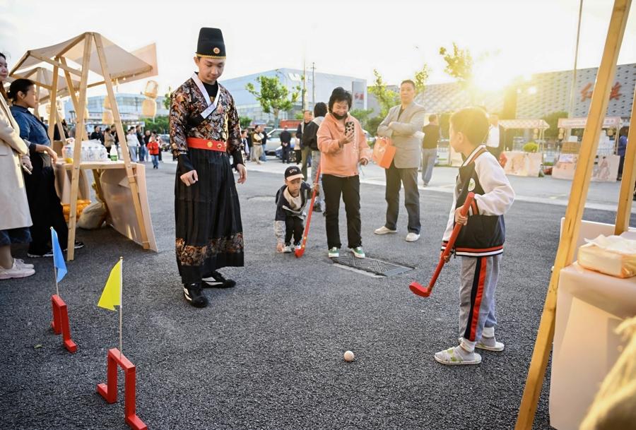 爲讓居民深度觸摸傳統文化,活動現場特別設置投壺、蹴鞠、捶丸、取香四大民俗遊戲互動區,將“古代雅趣”搬進現代集市。同步推出的“集章兌禮”機制更點燃參與熱情:居民完成任意遊戲任務即可收集印章,集齊四枚便能兌換小禮品。現場隨處可見居民闖關的身影,歡聲笑語不斷。