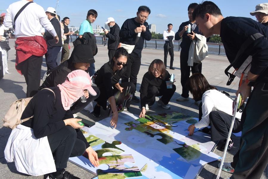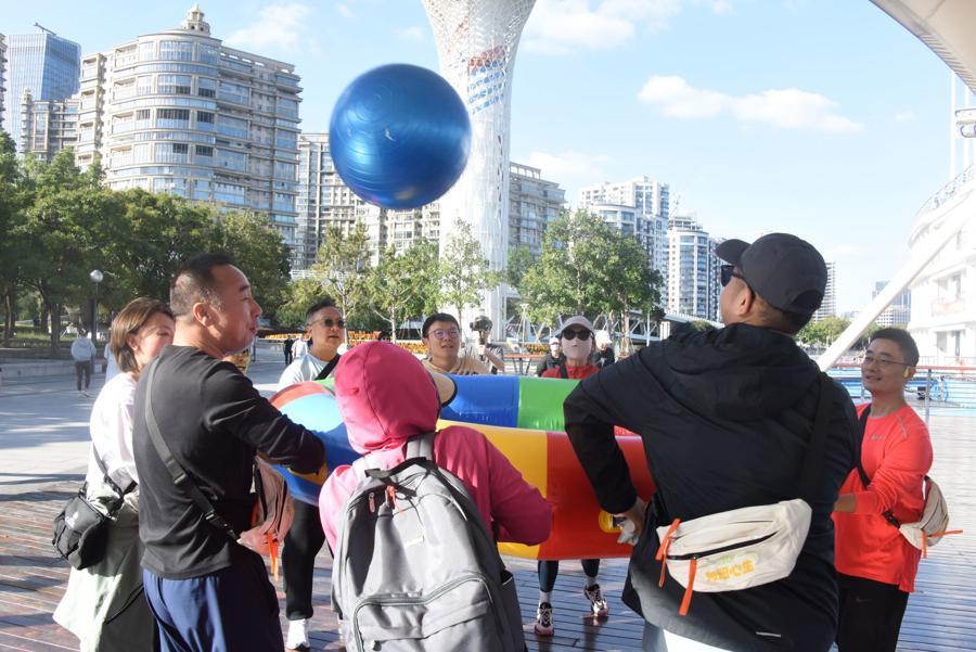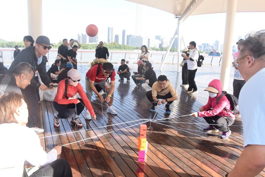 本次健步走活動以徐匯濱江爲起點,設置往返五公里的專屬路線。沿途精心佈置了心理拼圖、陽光宣言疊疊高、協作顛球三大趣味打卡點,讓職工們在徒步健身的同時,通過互動協作釋放壓力、增進情誼。