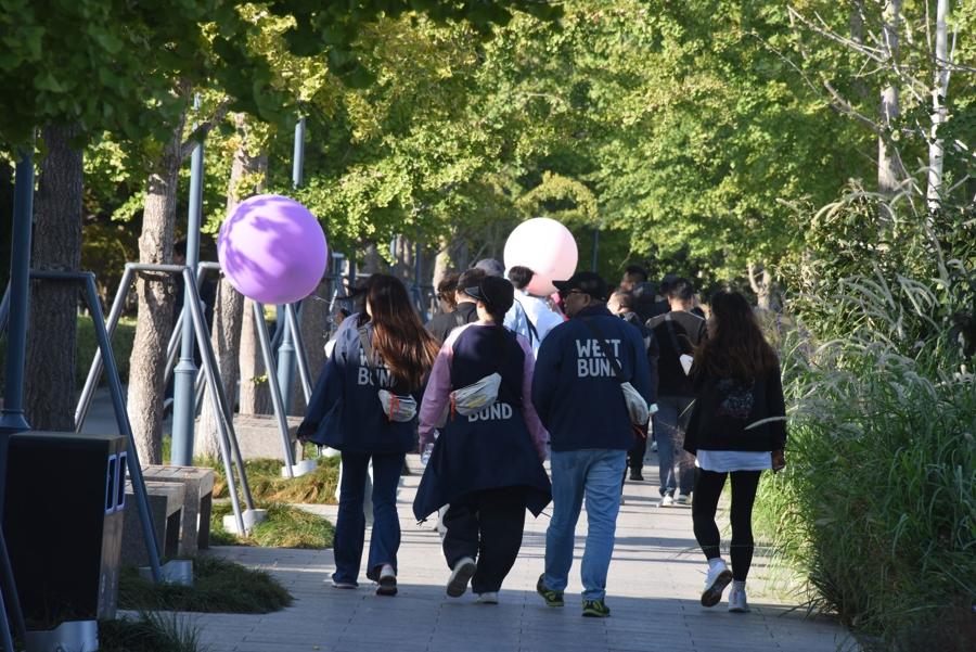活動中,“守護情緒球”“集章打卡”等特色環節貫穿全程,爲健步之旅增添不少樂趣。出發前,每支隊伍都認領了專屬“情緒球”,五彩斑斕的氣球不僅成爲濱江大道上一道亮眼的風景線,更藏着來自上海對口幫扶的雲南山區小學生手寫的鼓勵紙條。