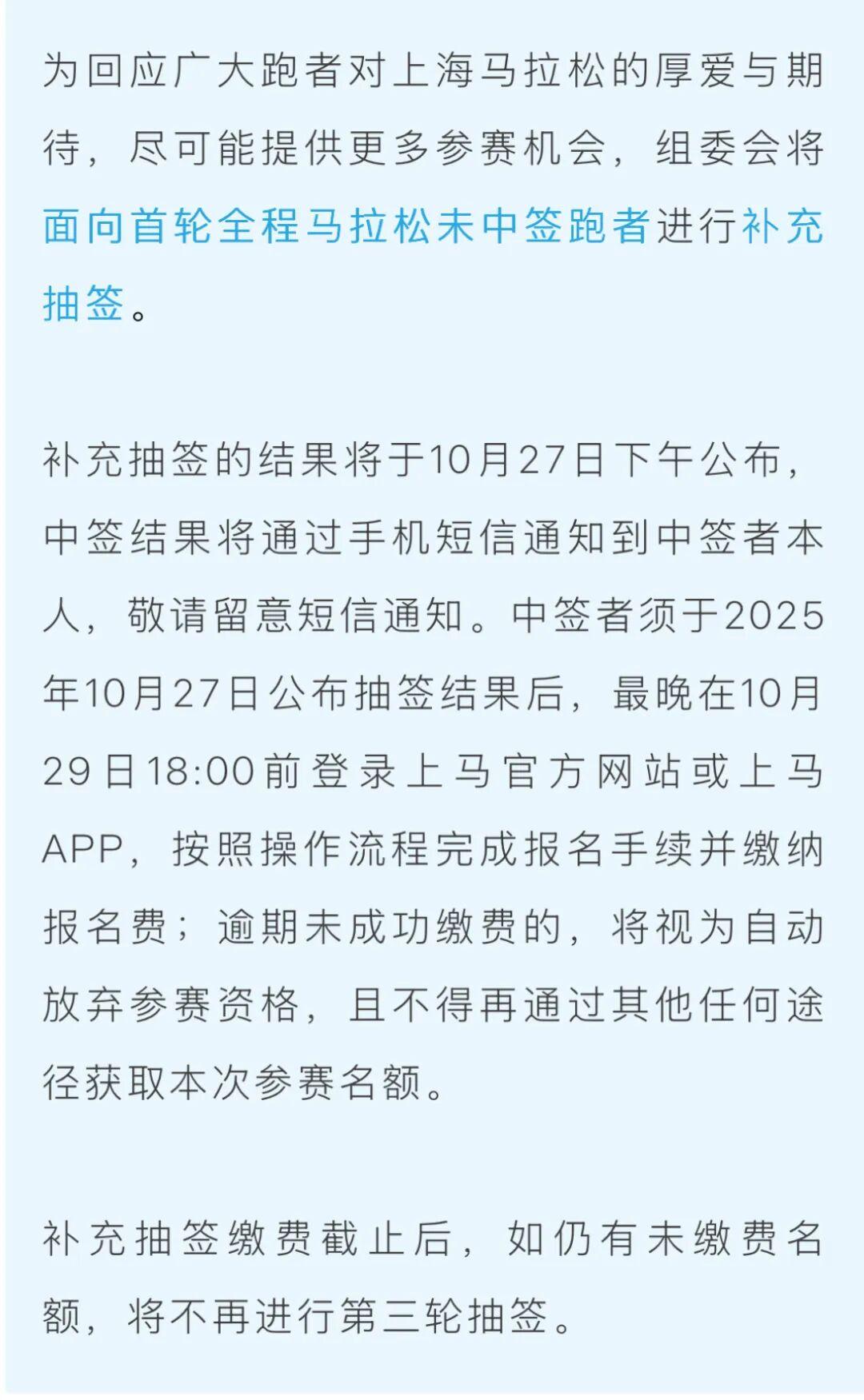 關於2025上海馬拉松補充抽籤事宜