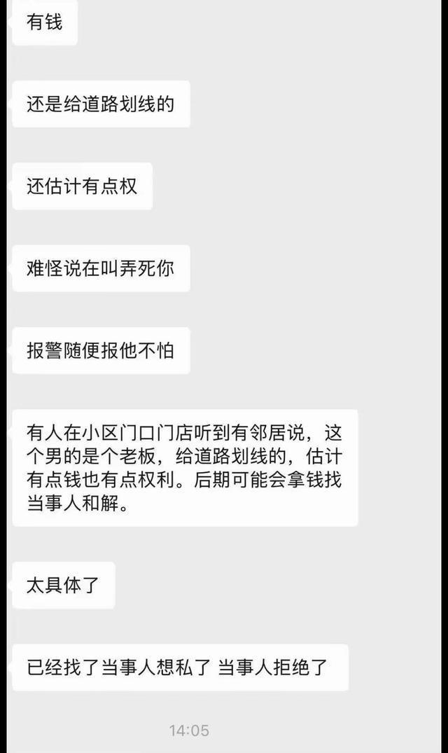 有知情人士透露,打人者背景十分強大,後續小區居民都上來勸解了,結果打人者還作勢要打路人,大喊讓路人去報警。