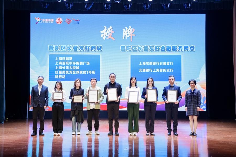 普陀區致力於構建涵蓋日常生活、健康照護與購物消費的全方位養老服務體系。活動現場爲上海環球港、上海百聯中環購物廣場、上海長風大悅城、紅星美凱龍全球家居1號店、鴻壽坊頒授第二批本區“長者友好商城”,爲上海農商銀行石泉支行、交通銀行上海普陀支行頒授本區首批“長者友好金融服務網點”,將適老化理念融入消費、金融等生活高頻場景,讓尊老敬老可見可感。