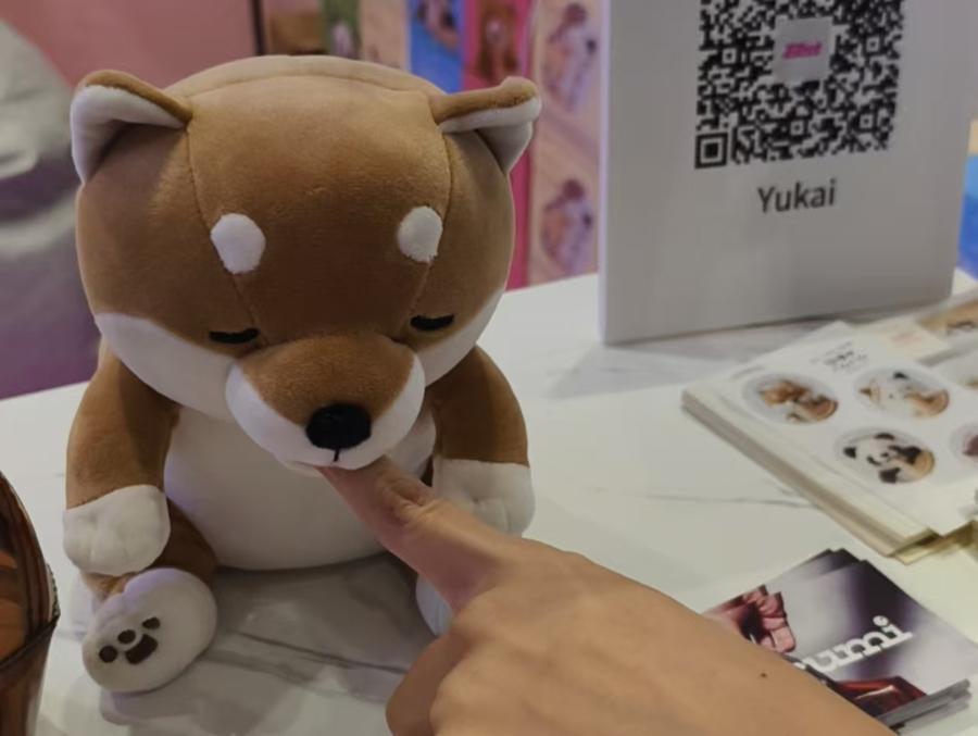 該公司的其他產品也延續簡單風格。一隻小狗,將手指送進它嘴裏時,它每次都會用不同力度“咬”你一下;一個毛茸茸的物體,尾巴會時不時動一動;一個趴在杯子上的小可愛,自顧自吹冷風……線下工作人員表示,與其讓AI面面俱到,不如只專注一個極致的情感瞬間。她還透露,咬手指的小狗是他們賣得最好的產品,嘉年華現場人們將展臺圍得水泄不通求一“咬”證明了此言不虛。