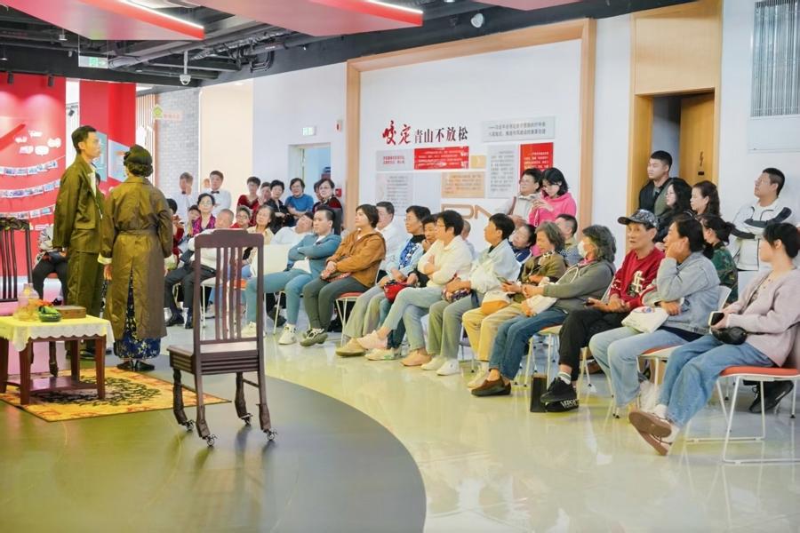 由社區居民自編自演的原創情景劇《璀璨星光》將現場氣氛推向一個高潮。該劇以社區志願者的真實故事爲藍本,將日常生活中那些不起眼卻充滿溫暖的“凡人微光”凝練昇華。劇中演員,同時也是東明路街道社區工作者的曹莉伽在分享創作心得時動情地表示,她將個人對社區工作的深刻理解與生活感悟全然傾注於角色塑造之中。