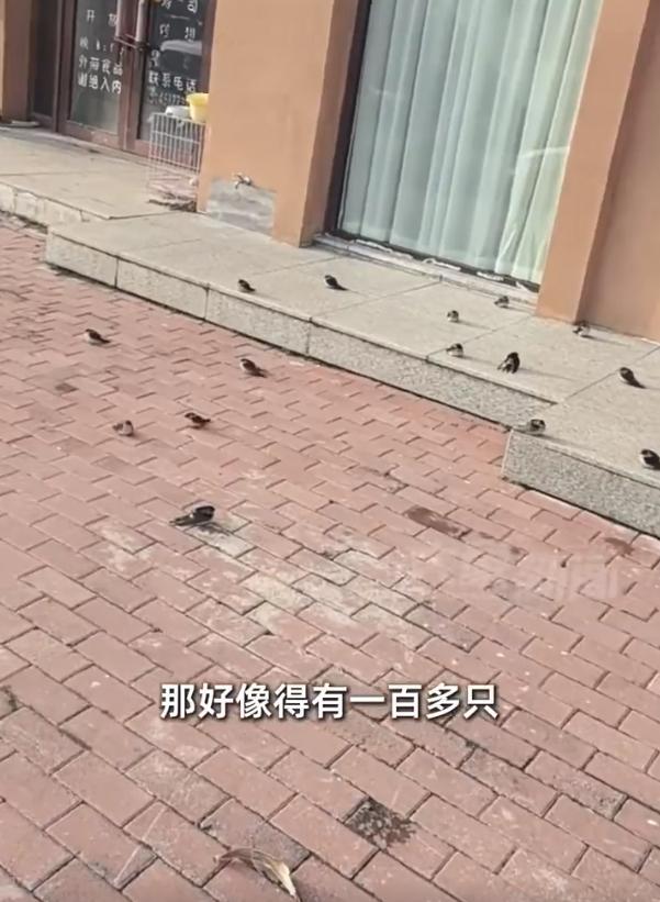 據大象新聞報道,在黑龍江省五常市的一棟民居前,地面上散落着數只燕子。
