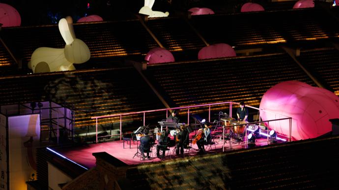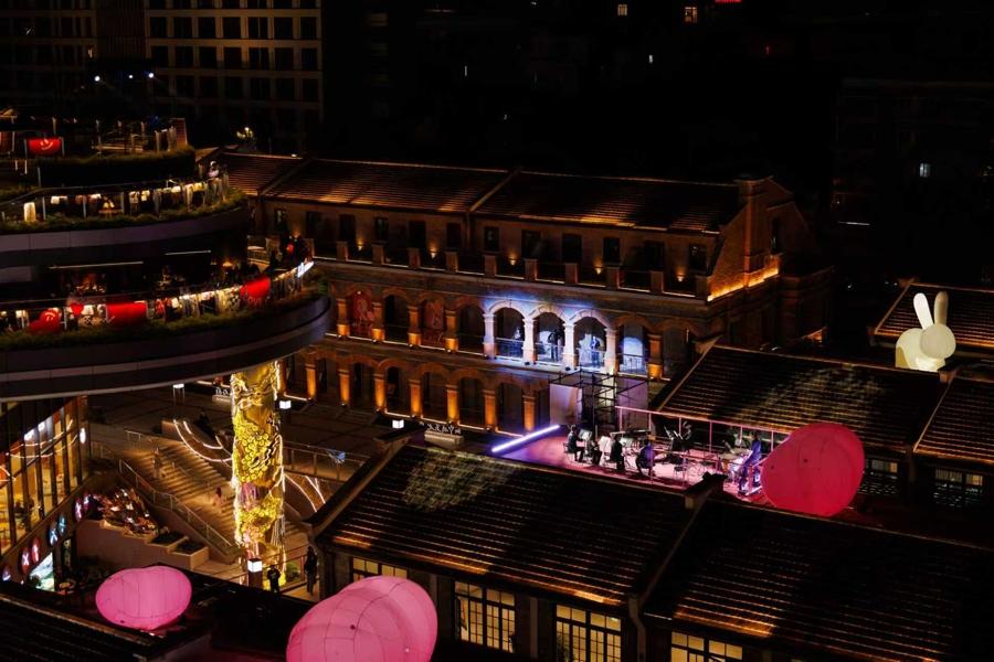 今晚,“行星交響詩”弄堂屋頂音樂會舉行,音符在愛心裝置間躍動,以音樂旅程點亮“心動時刻”。本次音樂會共有9名青年藝術家參演,帶來大提琴、小提琴、電子管風琴、長號、圓號、小號、雙排鍵、打擊樂等多種樂器,在弄堂屋頂、雙層連廊、弄堂地面構成立體舞臺,奏響了《查拉圖斯特拉如是說》、電影《星際穿越》《星球大戰》主題曲、《行星組曲》選段、《藍色多瑙河》等經典曲目。後續幾周,動漫原聲、星光之城等主題將陸續上演。