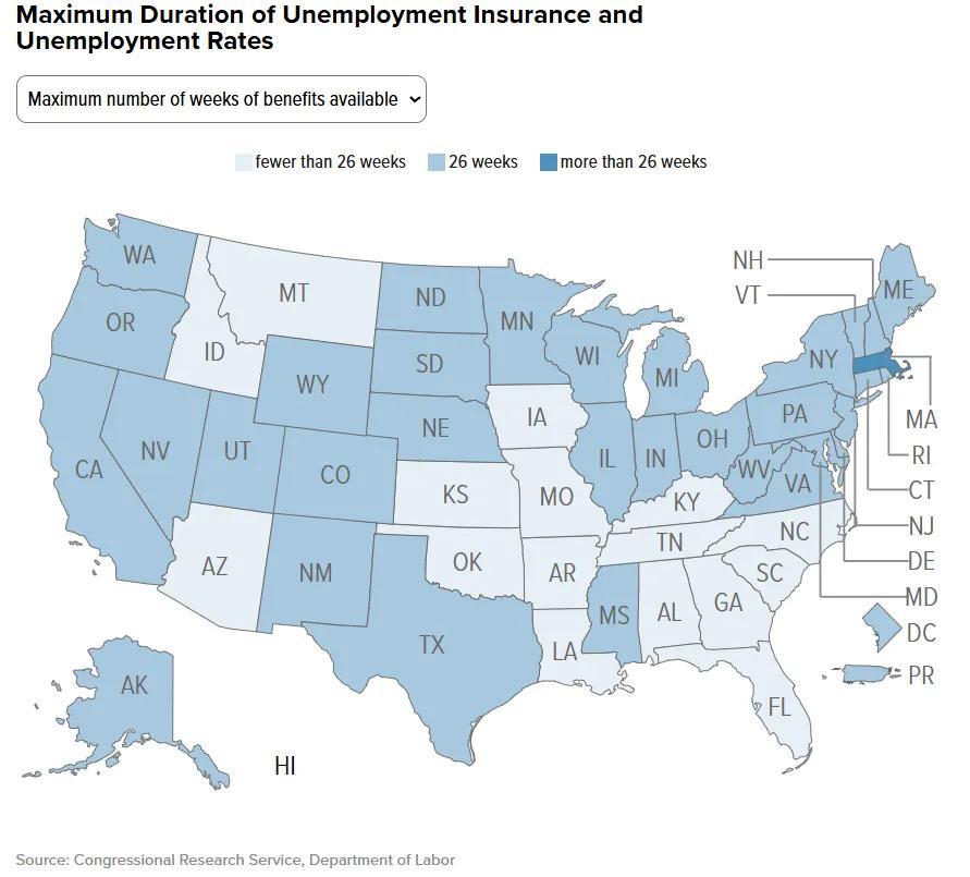 2.《How Many Weeks of Unemployment Compensation Are Available?》,Center on Budget and Policy Priorities,2025.10