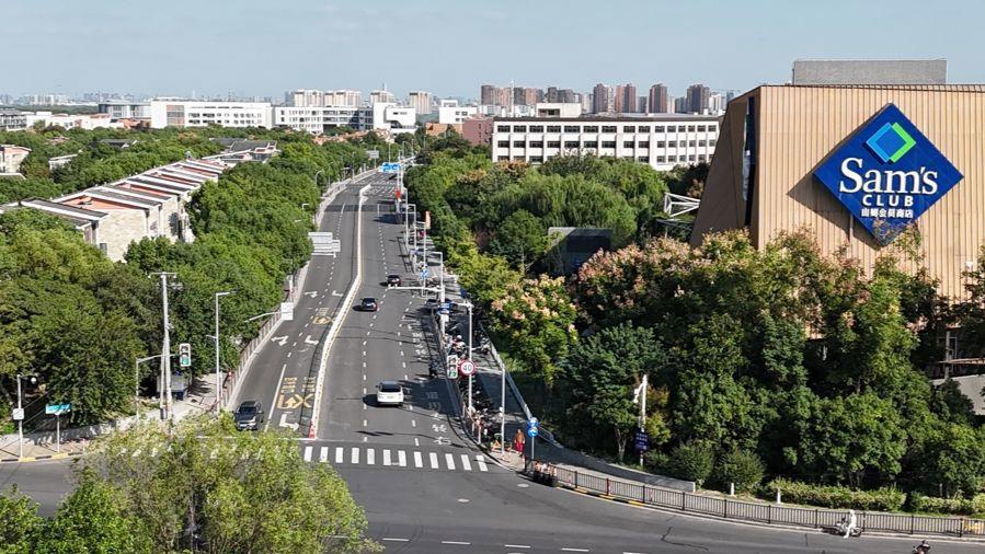 山姆超市片區則通過交通組織優化實現“微循環”。嘉松中路與業錦路路口實施北向東禁左,設置隔離欄分離過境與進場車輛,並開闢專用等候車道。一系列措施落地後,周邊居民通過12345熱線的相關投訴量顯著下降。