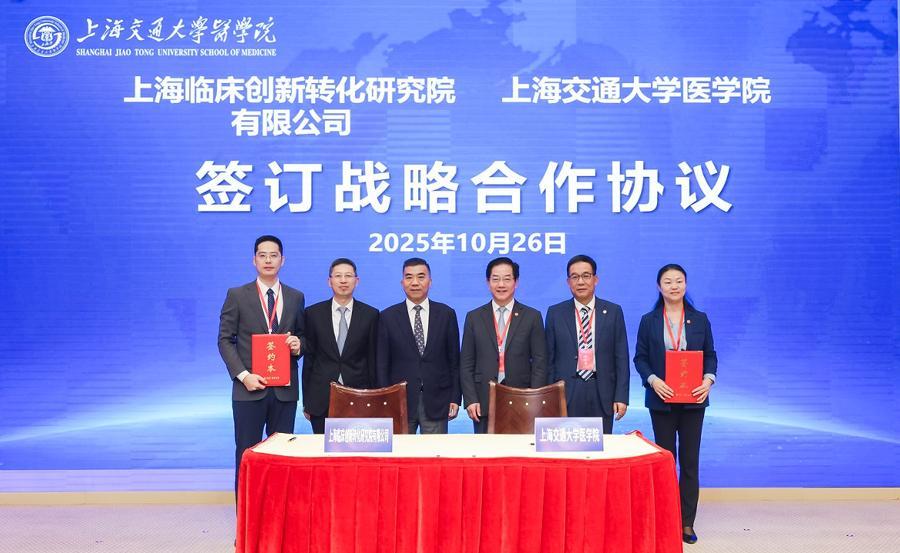 上海臨牀創新轉化研究院有限公司與上海交通大學醫學院現場簽訂戰略合作協議。