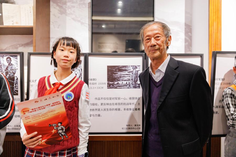 “作爲一名小學生,能用新技術讓近百年前的老作品煥發新生,這值得鼓勵。”陳偉南是上海交通大學設計學院教授,他也給黃宇蕎看了一部“學生作品”——其子在德國魏瑪包豪斯大學攻讀設計專業研究生,不久前創作了一部AI動畫短片,用3分鐘時間講述了上世紀30年代新興木刻運動在國內的興起、發展、社會影響。他鼓勵黃宇蕎再接再厲,用新技術創作出更多作品,用青少年的方式講好紅色故事。這場“邂逅”讓黃宇蕎很是感慨:“歷史和藝術就是這樣一代代傳遞下來,我們每個人都是其中一環。”
