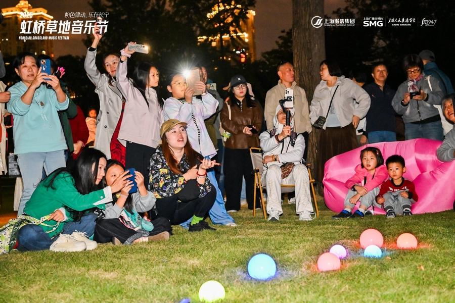 在市集的休息區,觀衆或是在懶人沙發上“躺平”享受秋日涼爽,或是自帶野餐墊自由就坐,在自然綠意中聆聽音樂、休憩放鬆……金秋時節,2025 虹橋草地音樂節於10月25日-26日在新虹橋中心花園上演。音樂節以 “粉色律動,樂在長寧” 爲核心理念,在開闊的戶外空間打造 “音樂 + 自然 + 潮流” 的沉浸式體驗。