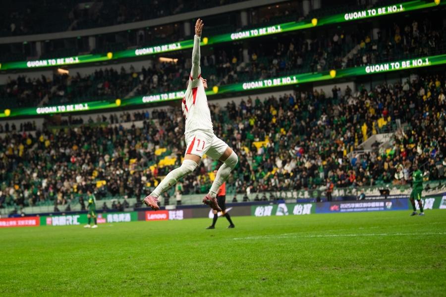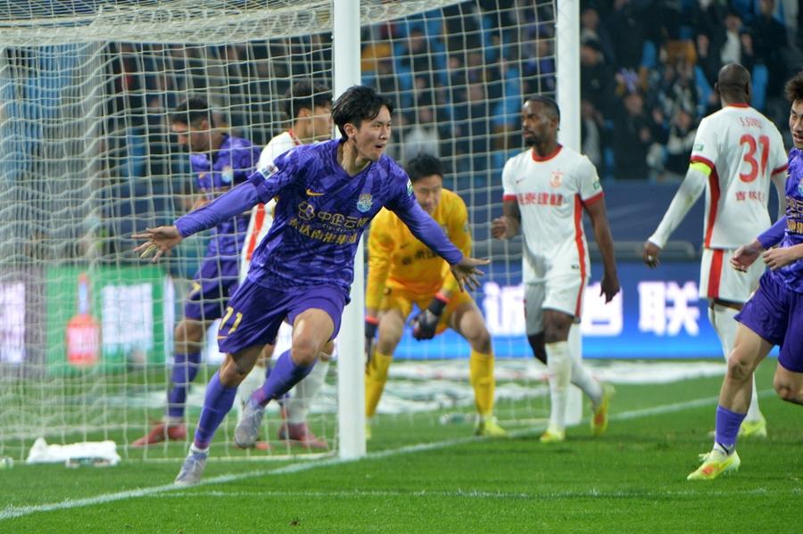 傷停補時第10分鐘,謝維軍(左)的進球幫助津門虎戰平長春亞泰