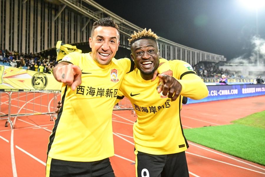 阿齊茲兩送助攻,戴維森(右)梅開二度,青島西海岸攪亂中超爭冠形勢