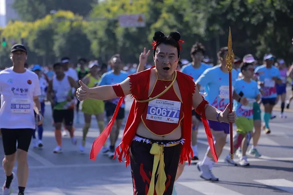 有的運營公司拿着10萬元的預算,就想辦一場馬拉松;有的人穿着奇裝異服,變成奧特曼、哪吒、婚紗新娘……把賽場變成大型Cosplay現場和社交媒體素材採集地;地方政府竭力支持,當然想借其發展文旅和提升城市形象,但回過頭來發現,最出圈的卻是“調休護士”“校門口撒尿”“白嫖物資”等負面新聞。