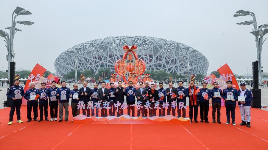 在熱烈的舞獅表演氛圍中,車隊緩緩駛入北京奧林匹克公園慶典廣場,拉開慶祝活動序幕。歡迎儀式上,楊萬明會長與功・塔帕朗西前副總理先後致辭,高度肯定這場跨越山海的友誼征程。隨後,車隊隊員獲頒紀念證書,並與中泰各界人士合影留念,定格下中泰建交50週年的珍貴瞬間。
