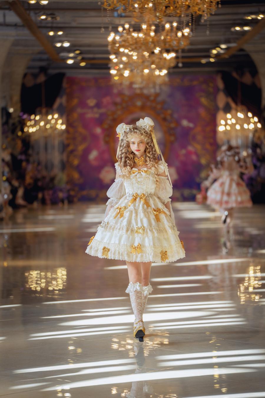 大秀集中展示了安東尼蛋糕系列的36套新品。該系列自2017年推出以來,已累計推出超過100款設計,以經典小飛袖、燈籠袖露肩設計以及形似奶油蛋糕的裙襬爲特點,深受年輕消費者喜愛。本次大秀最大亮點,是品牌與百年非遺“南翔小籠”的跨界聯名款。該系列以蟹粉小籠、鮮肉小籠爲配色靈感,在保留經典帽飾與頸飾的基礎上,創新加入小籠包造型髮飾,將中華傳統飲食文化與西方古典美學、二次元潮流巧妙融合。這種創新嘗試不僅展現了國牌設計在傳承與創新中的無限活力,更契合了年輕人對文化內涵與個性表達的雙重追求,得到南翔鎮地方政府的大力支持。