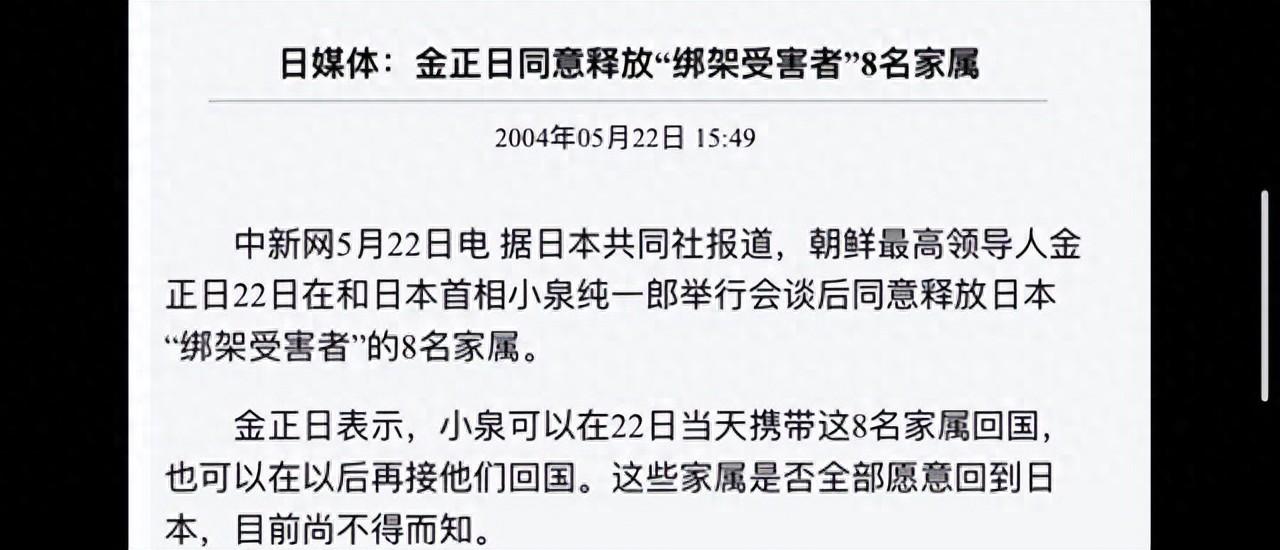 這次訪問取得了突破——朝鮮金正日首次公開承認綁架了日本人,並表示“遺憾”,朝方送回了5名被綁架者及其子女。