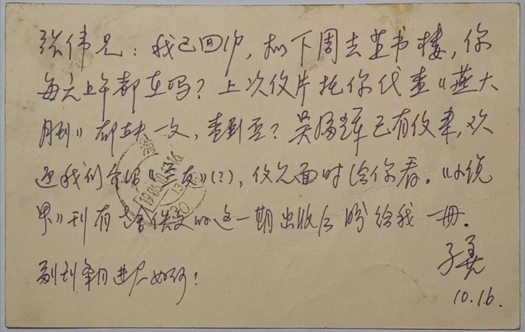 這封信寫於1986年8月14日。信中主要寫的是文壇前輩、後期創造社成員李一氓先生到上海休養,因他老人家曾爲拙編潘漢年早期文學作品集《犧牲者》(花城出版社1988年2月初版)作序,很想去拜訪請益,故託已見過李老的張偉兄設法。後來,我果然與從金山回到上海的李老見了面,合了影,留下了難忘的紀念。