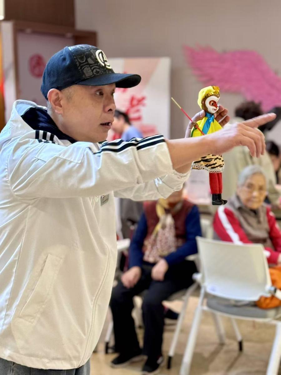 文化娛樂板塊同樣活力湧動、熱鬧非凡,處處洋溢着蓬勃生機。非遺文化展示區好戲連臺:柔美舒展的太極扇表演剛柔並濟,靈動翩躚的扇子舞賞心悅目;“心晴品牌”皮影戲引人駐足,獲國家專利的《手偶劇》趣味十足;喜慶歡快的歌鼓樂、古箏班現場學演展示輪番上演,每一項表演都讓老人們精神煥發,現場掌聲與喝彩聲此起彼伏,不絕於耳。