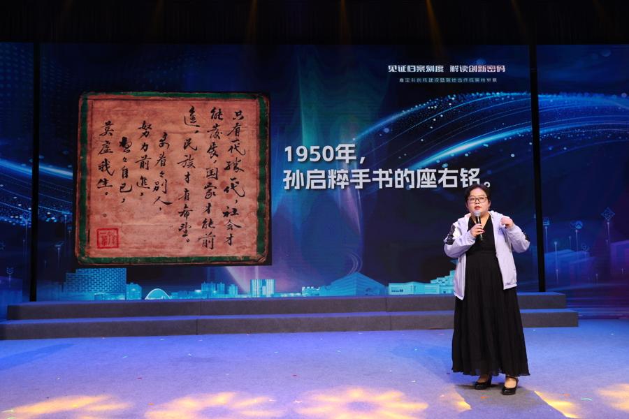 “每一份檔案都是科研報國初心的見證。”上海激光等離子體所孫今人在分享中,展示了祖父孫啓粹“只有一代勝一代,國家才能前進”的座右銘卡片。作爲孫承緯院士的女兒,她以“敏思、篤學、自強、進取”的家風傳承爲例,呼籲年輕科研工作者將個人理想融入“嘉定科創核”建設,在關鍵技術攻關中實現突破。