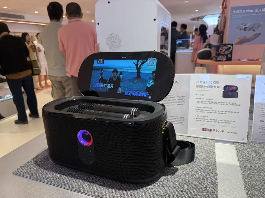 新奇感,是不少銀髮族來此打卡的原因。記者在現場看到,在Zpolot“黑科技”區域,不少高科技產品特別爲銀髮羣體而設。比如,一款“戶外便攜式K50 KTV點歌音響”就成了爆款,打開“黑盒”,裏面是兩個話筒和一塊點歌屏幕,銷售人員介紹,這款產品滿足了銀髮族戶外便攜式唱歌的需求,可以在家中、車載、廣場、露營等不同場景使用,會員價1999元,領券還能減500元,性價比很高。一旁,王阿姨剛剛下單了一款便攜式空氣電子鼓,通過觸控技術和震動反饋系統,就可以在任何時間、任何地方演奏,售價只需要399元。