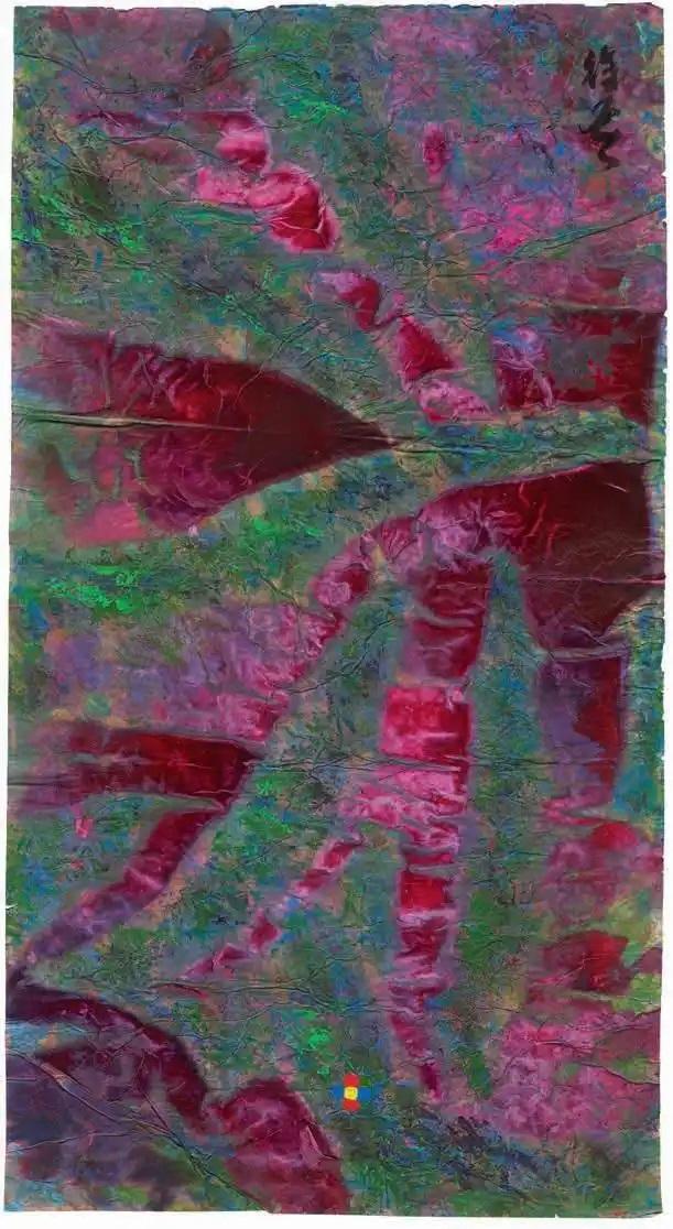 我印象中的徐鼕鼕先生,身上兼具一位藝術家的熱忱與感奮,和一名知識分子的省思與自覺。在他的作品中,藝術家的才性與膽魄、激情與詩意,以一種奇妙、傳神而引人入勝的方式化合在一起。在其長期深耕創作的系列組畫《二十四節氣·七十二候》中,徐鼕鼕創造性地將中國傳統哲學中基本的“氣”的概念與形制引入作品,通過色彩媒介在紙上的肌理褶皺,與中國久遠二十四節氣的自然信息風貌相連通。在形而上的思想觀念與形而下的媒介材料之間,我們驚異地發現,雖爲抽象繪畫,他的作品不同於波洛克“行動畫派”抽象表現主義的偶發性與製作性,而是在文化根底層面強調人與自然的關係,以及二者融於一體的“自動輸出”,這使其作品圖像超越了一般意義上的架上繪畫範疇,而在獨具東方文化底色的水墨藝術特徵的同時,兼具了行爲藝術、裝置藝術的張力與當代性。或者我們可以說,他通過藝術創作的實踐,敏銳地發現與揭示了二十四節氣所蘊含的宇宙觀、世界觀、生命觀,及其生髮出的藝術觀、社會觀、文化觀,對於當下世界文化的重要啓示和普適意義。