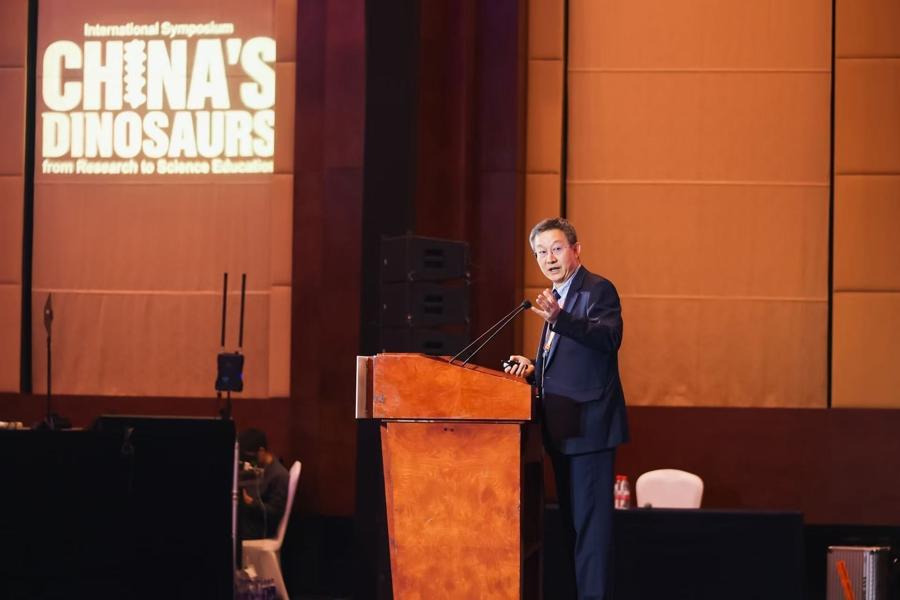 徐星院士在中國恐龍國際研討會上作主旨演講。(圖:上海科技館)