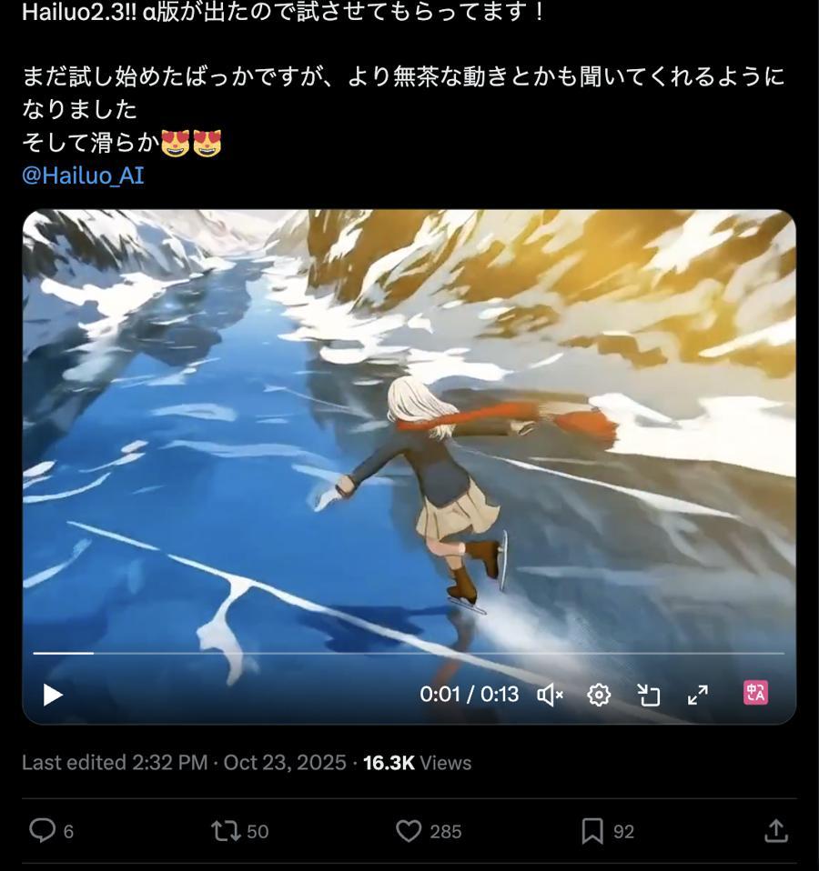 來自上海的AI獨角獸MiniMax稀宇極智剛剛正式發佈其最新視頻生成模型海螺2.3(Hailuo 2.3),在Hailuo 02模型基礎上實現了全面的技術升級,特別是在動態表現力、風格化呈現以及人物表演細膩度方面取得顯著突破。這一發布標誌着國內AI視頻生成技術再度刷新行業標杆,爲創作者和內容製作者提供了更加實用和高效的工具。
