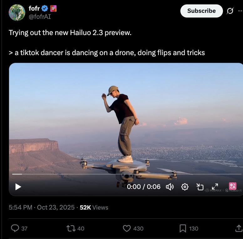 新品連發!MiniMax發佈視頻生成模型海螺2.3,複雜動作流暢呈現