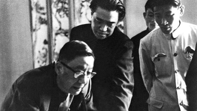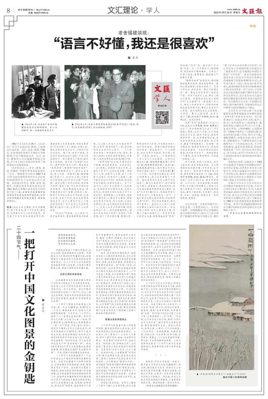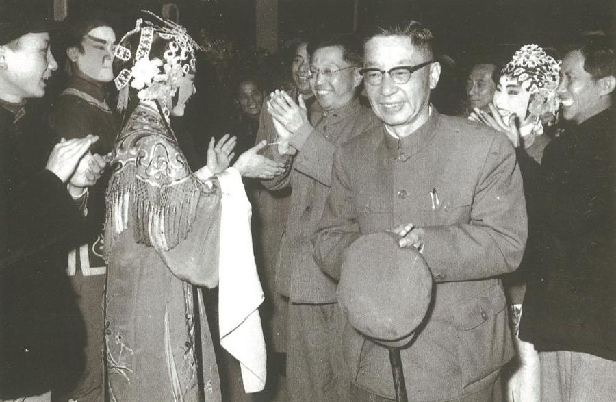 1962年4月,老舍與曹禺等觀看莆仙劇《春草闖堂》。(舒濟、舒乙、金宏編著《老舍》,燕山出版社,1997)