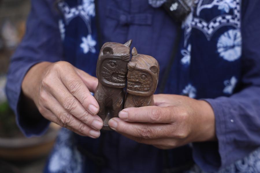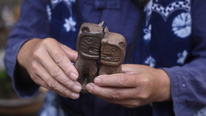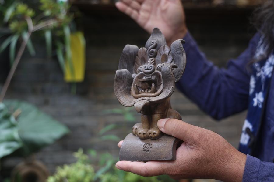 爺爺去世時,工作臺上還留着一隻未完成的瓦貓。“爺爺的手藝,我想把它傳承下去。”蘇龍祥從傳統出發,卻不拘泥於古法。大理十二縣市的瓦貓造型本就不盡相同,而他在此基礎上大膽創新,開發出300多種瓦貓形態。